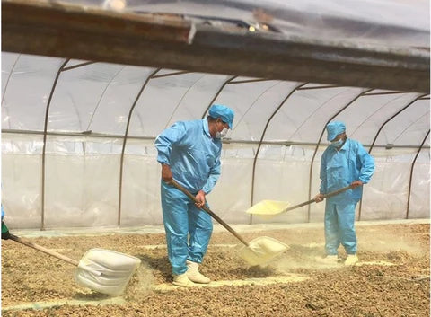 The majority of pine pollen on the market is sourced from Masson Pine in China, where common practice is to microwave the raw pollen to mechanically crack its cell wall. They crack the cell wall so the pollen can be processed on the warehouse floor and not fly away! Gross!